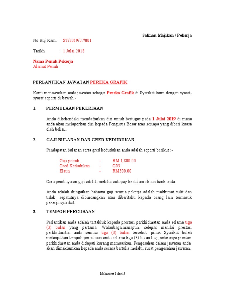 Contoh Surat Pelantikan Kerja Kerajaan Letter 7saudara Com