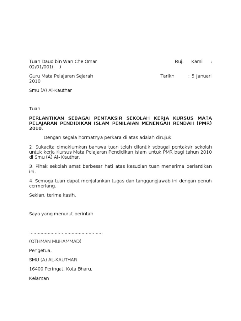 Contoh Surat Pelantikan Jawatan New Letter Website